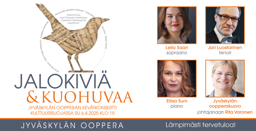 Tervetuloa nauttimaan oopperan sykähdyttävimmistä aarteista! Luvassa on unohtumaton iltapäivä, jossa sävelet säihkyvät kuin jalokivet ja tunnelma kuplii kuin keväinen kuohuva. Konsertissa kuullaan oopperamusiikin rakastettuja aarioita ja duettoja sekä upeita kuorokohtauksia. Tarjoilemme myös maistiaisia tulevasta Lucia di Lammermoor -oopperasta!
